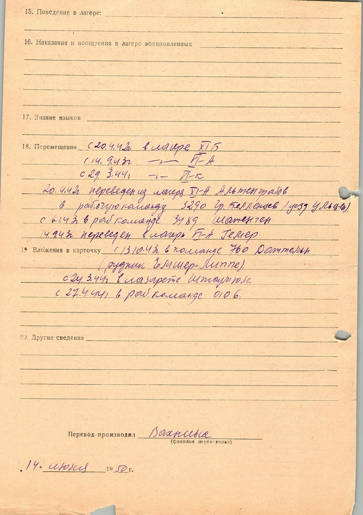Ивко Иван Анисимович, 1921 г. р., с. Госкаленки. Рядовой. Попал в плен в шталаг 357. 20.04.1942 г. был переведен в лагерь XI Б, 14.09.1943 г. - в лагерь VI А, 29.03.1944 г. - в шталаг VI К.