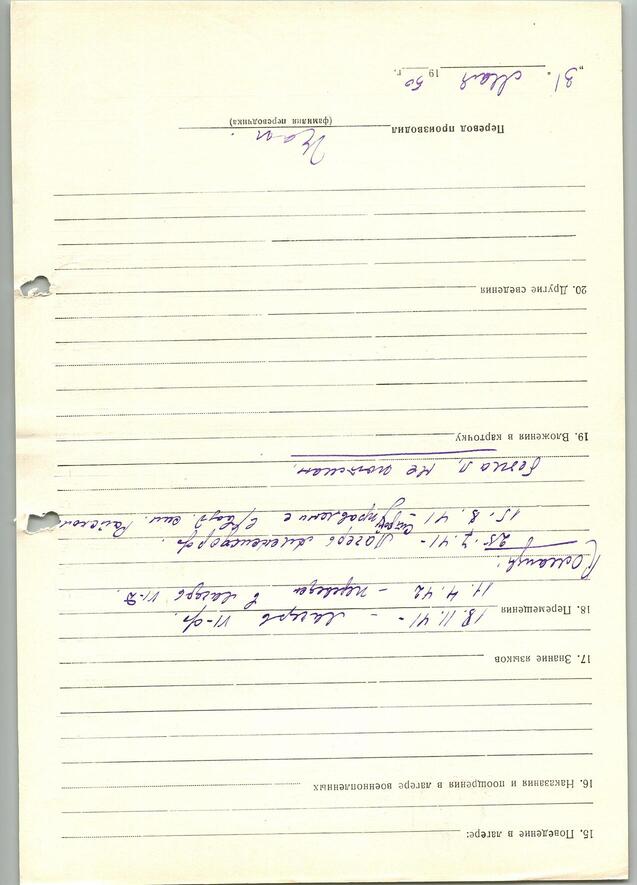 18.11.1941 г. был переведен в лагерь VI Ф, 11.04.1942 г. - в лагерь VI Д. Позднее бежал из плена, пойман не был.