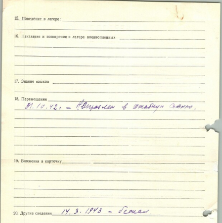 Максименко Василий Степанович, 1919 г. р., с. Великий Корогор. Младший сержант стрелковой части. Попал в плен 12.08.1942 г. в Белом, шталаг 337. 31.10.1942 г. был направлен в штабную сотню.