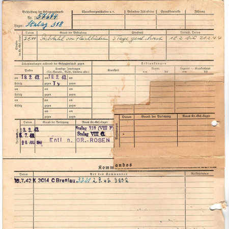 13.02.1943 г. был переведен в лагерь 318 (VIII Ф), 15.07.1943 г. - в лагерь VIII Ц, 29.08.1944 г. отправлен в Грос-Розен.