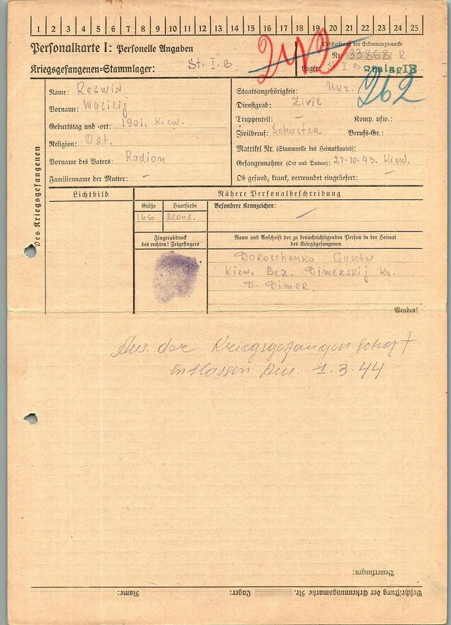 Военнопленные, трофейные карточки. Киевская обл.