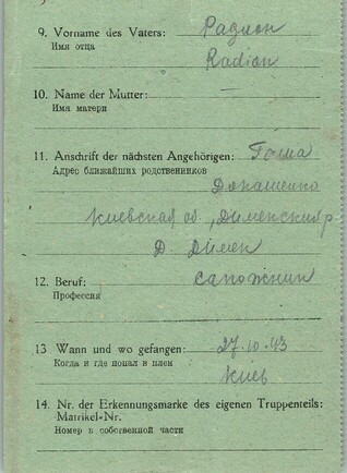 Военнопленные, трофейные карточки. Киевская обл.