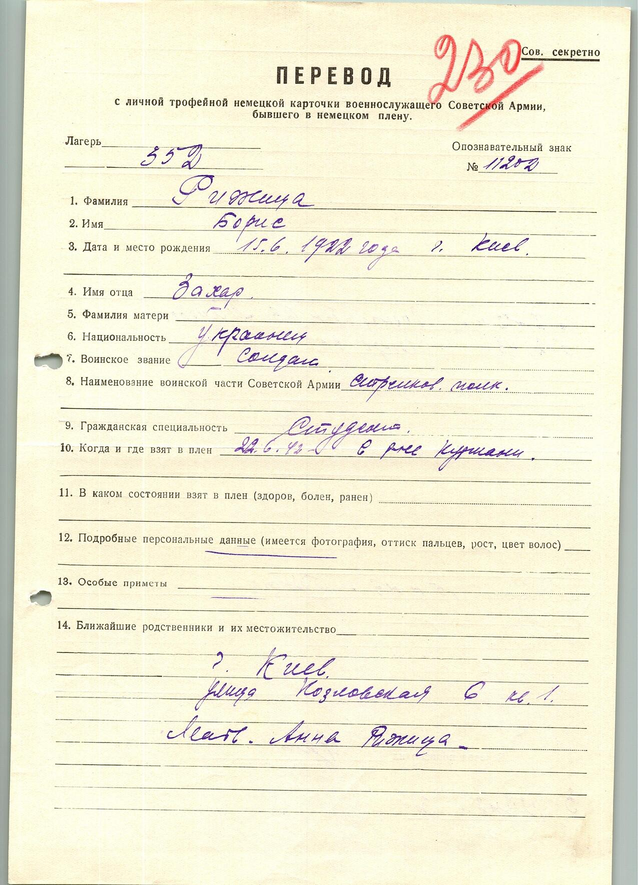 Военнопленные, трофейные карточки. Киевская обл.