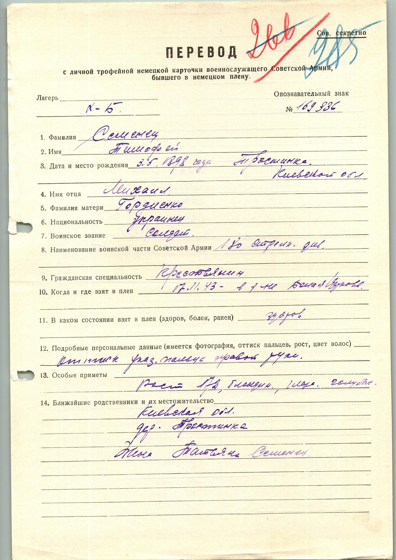 Военнопленные, трофейные карточки. Киевская обл.