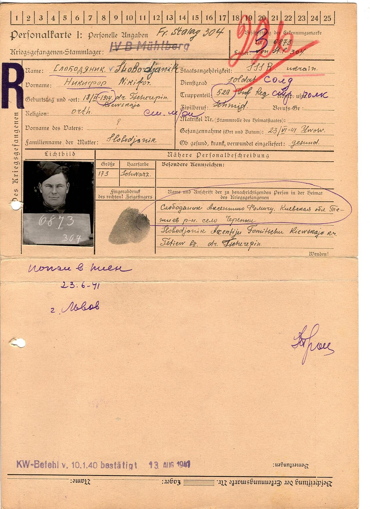 Военнопленные, трофейные карточки. Киевская обл.