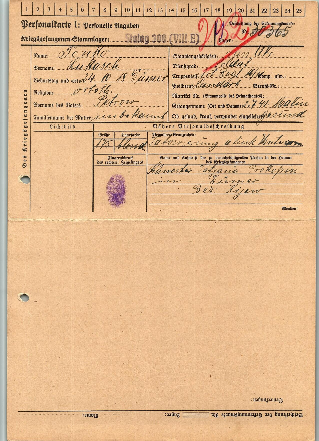 Военнопленные, трофейные карточки. Киевская обл.