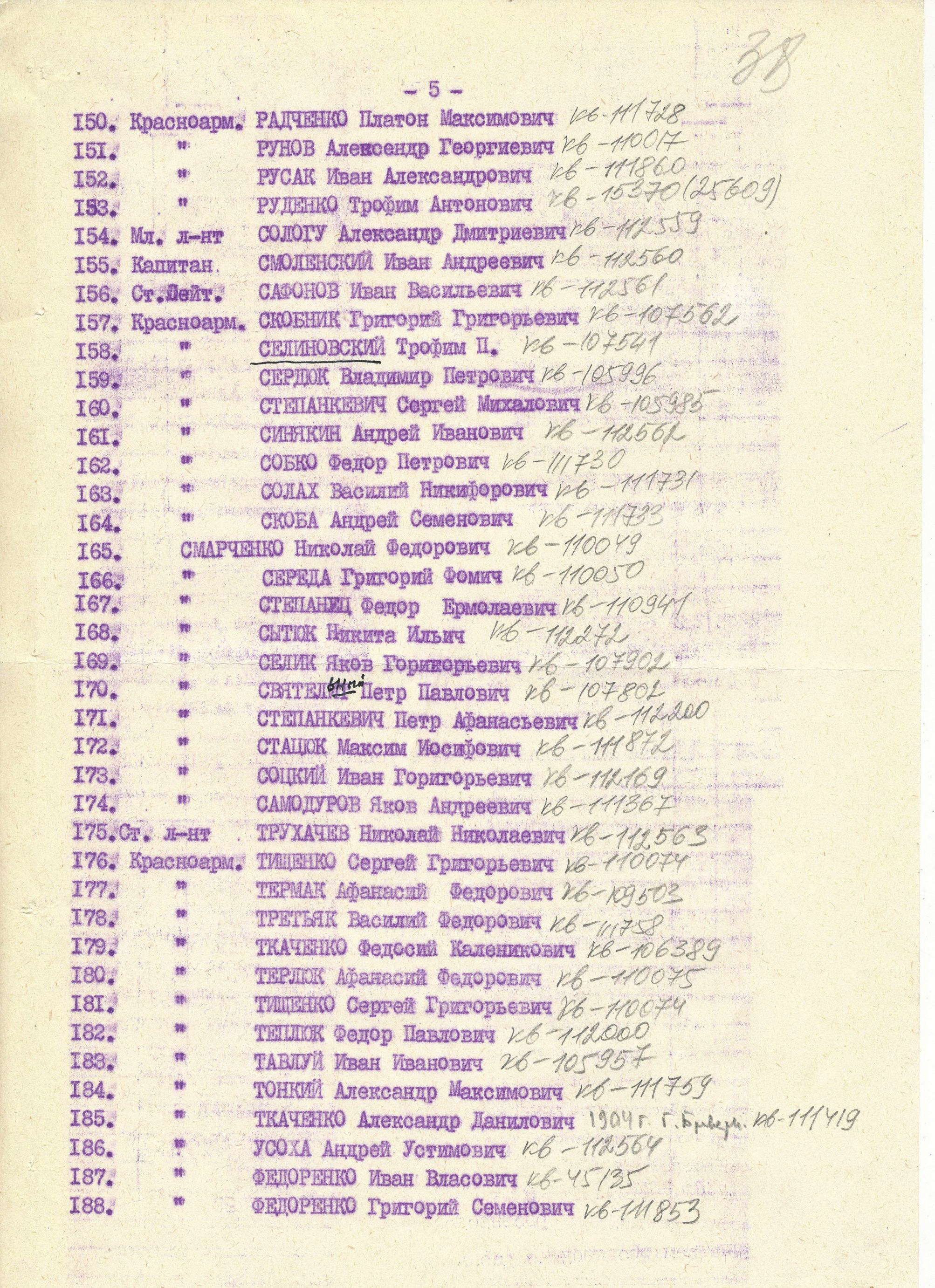 Именной список погибших военнослужащих г. Бровары, погибших в 1941-1945 гг.