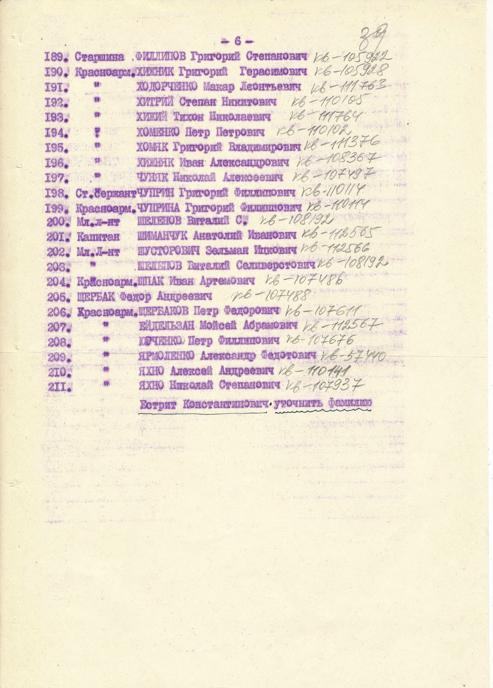 Именной список погибших военнослужащих г. Бровары, погибших в 1941-1945 гг.