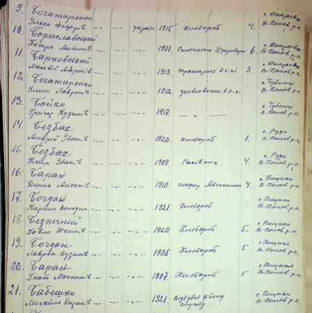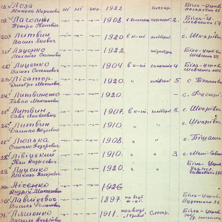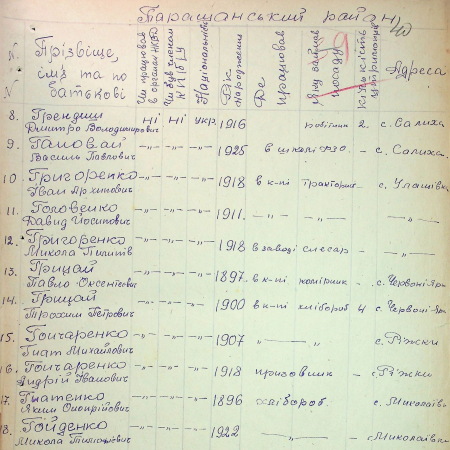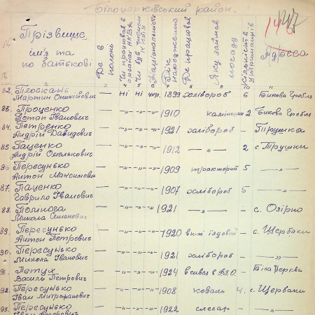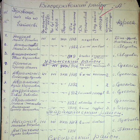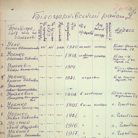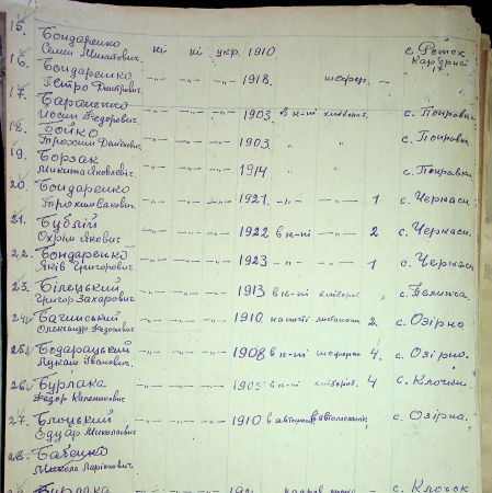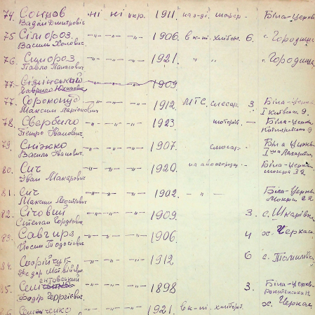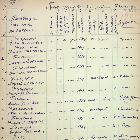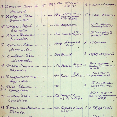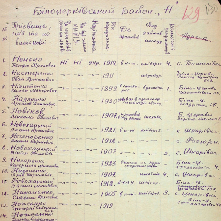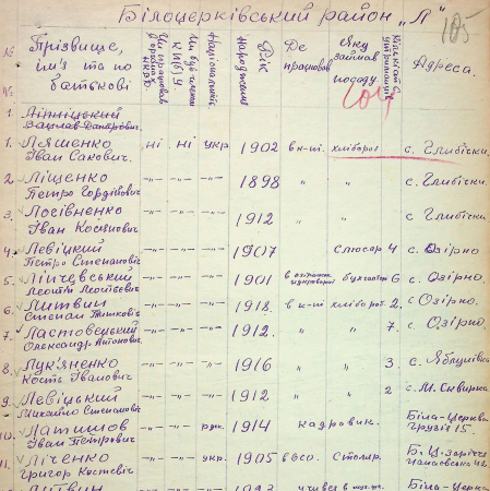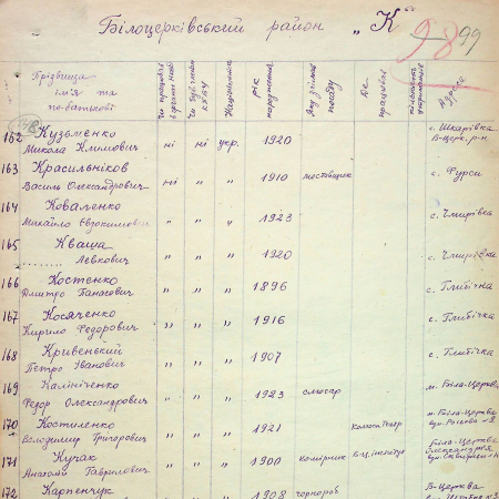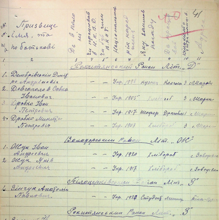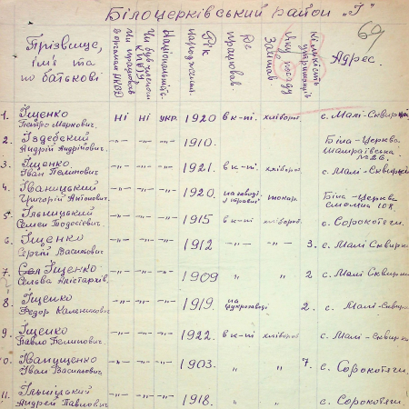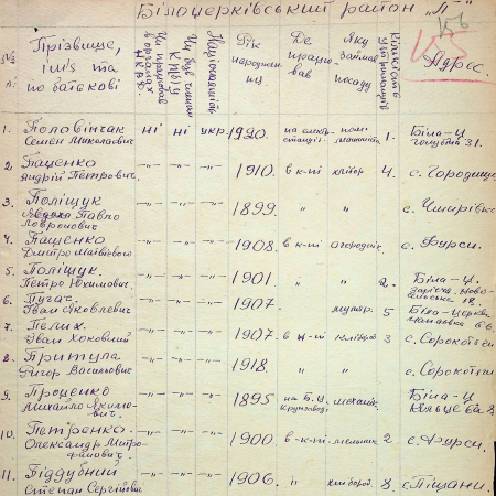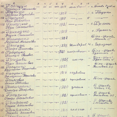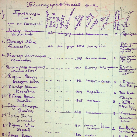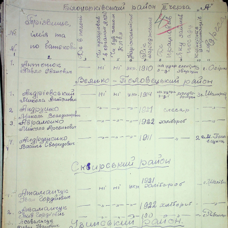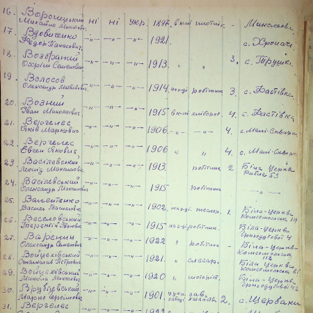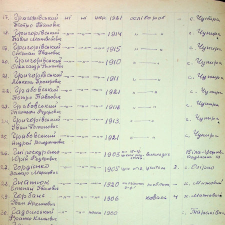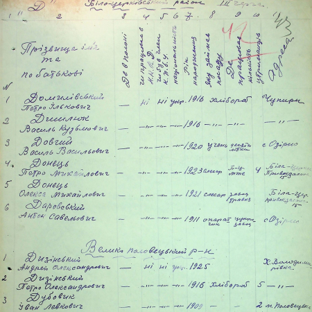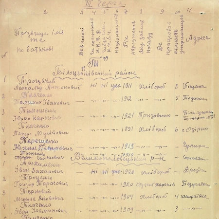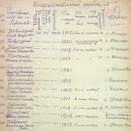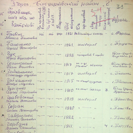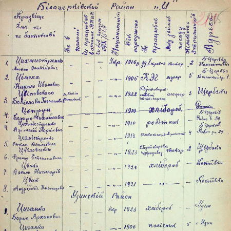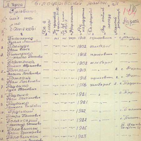 Списки военнопленных Белоцерковского района за 1941 г. , т. 1