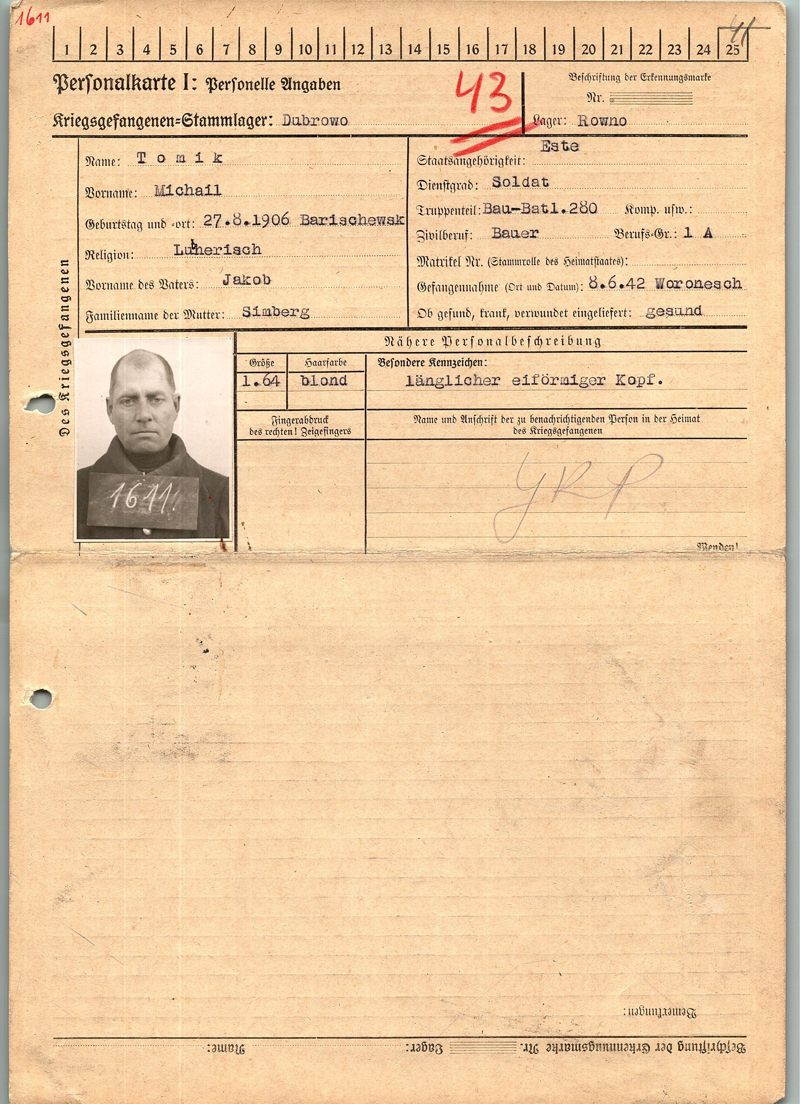 Военнопленные, трофейные карточки. Киевская обл.