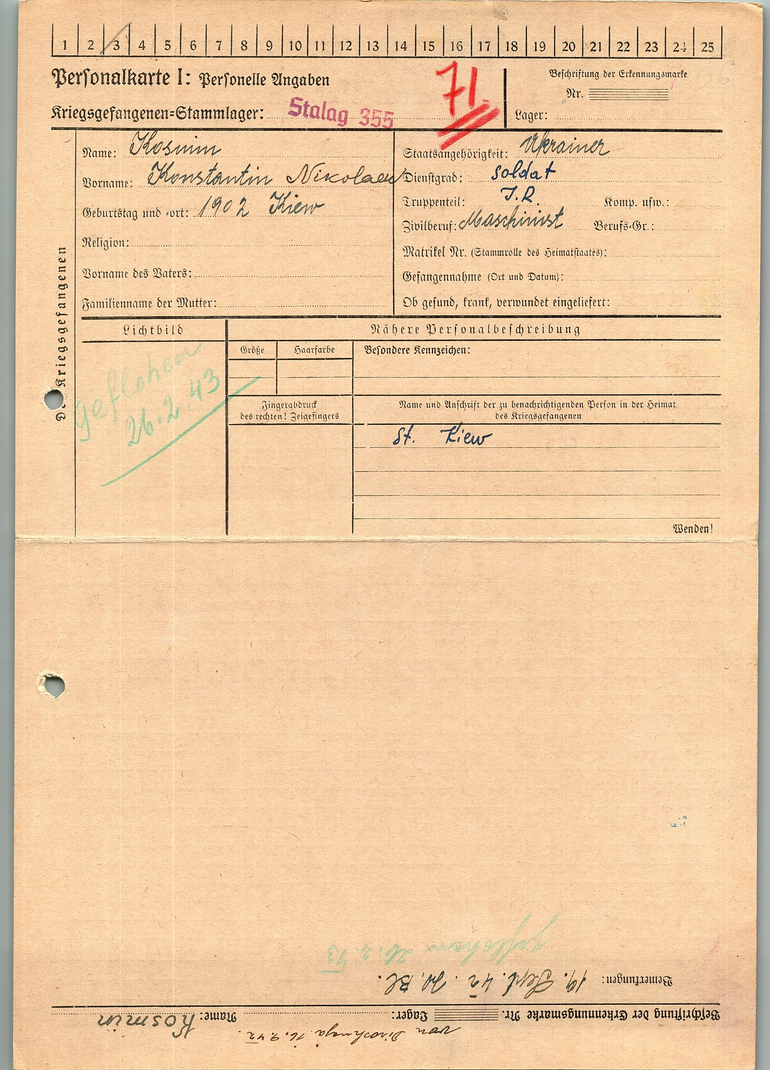 Военнопленные, трофейные карточки. Киевская обл.
