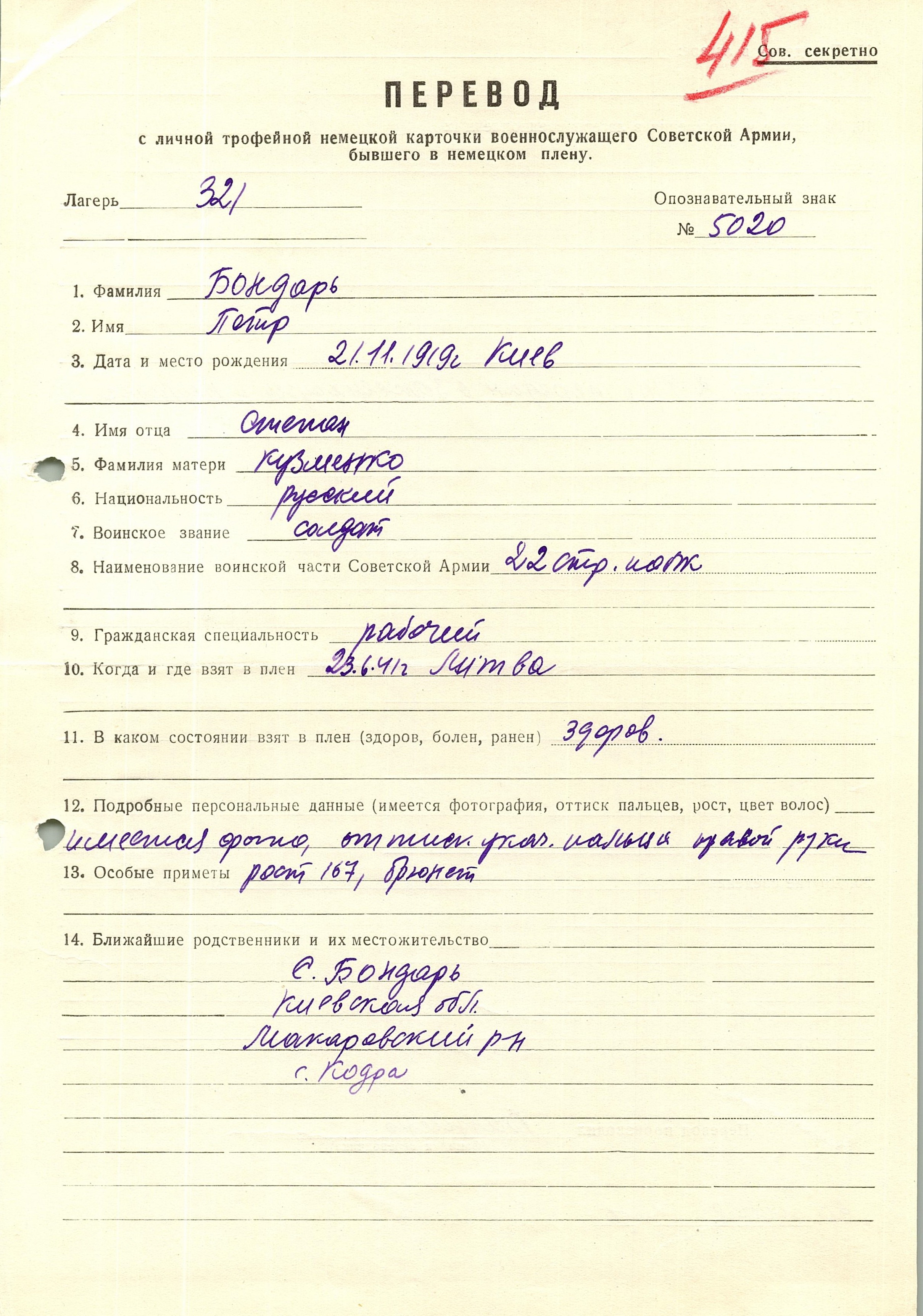 Военнопленные, трофейные карточки. Киевская обл.