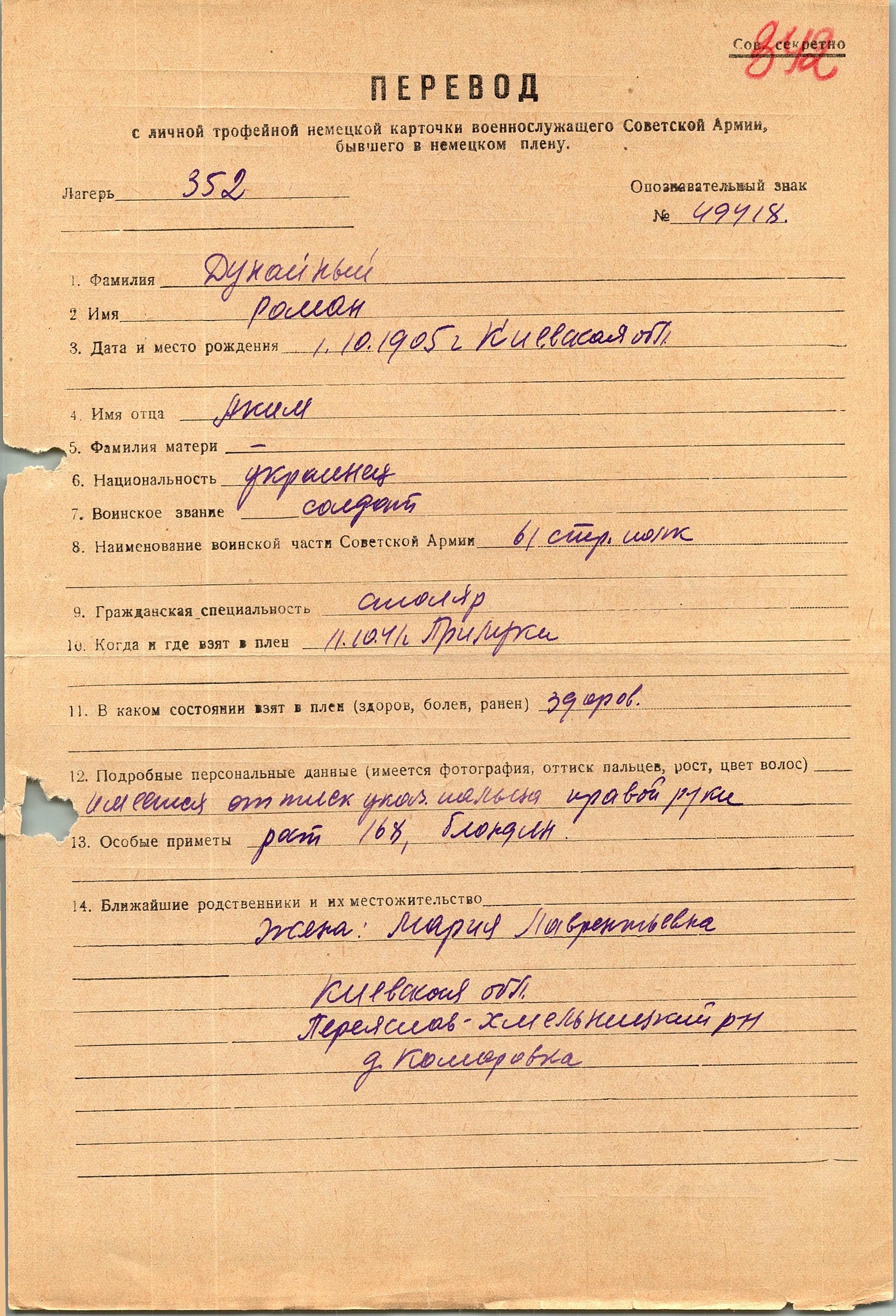 Военнопленные, трофейные карточки. Киевская обл.