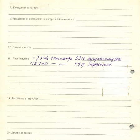 Забара Семен Нестерович, 1913 г. р., с. Григоровка, Переяслав-Хмельницкий р-н, Киевская область. Украинец. Рядовой, железнодорожный полк № 56. Попал в плен 23.09.1941 г. в Барышовке. С 07.05.1942 г. находился в команде 5310 Аугустхаузен., с 12.05.1945 г. - в команде 5789 Норденхам.