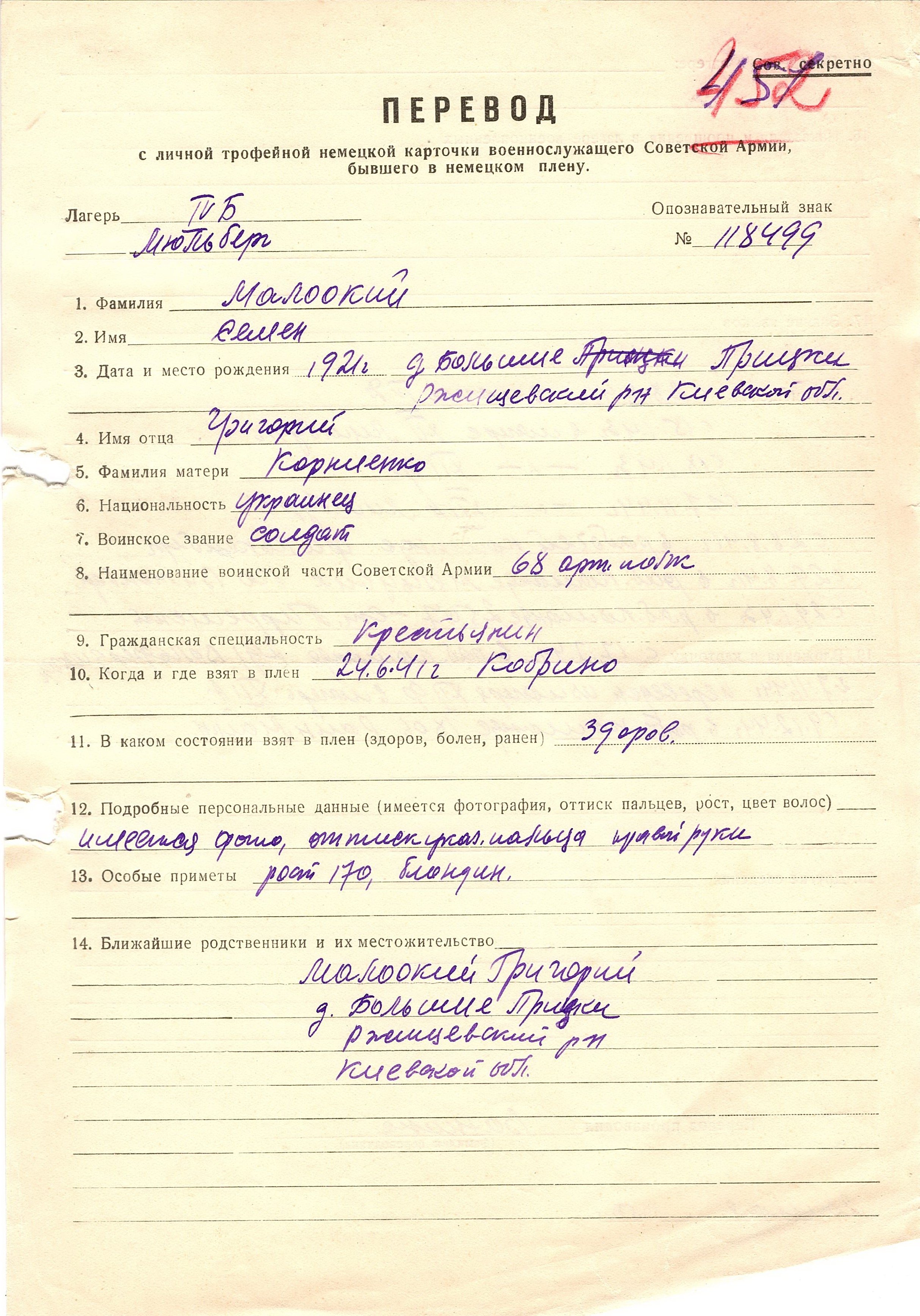 Военнопленные, трофейные карточки. Киевская обл.