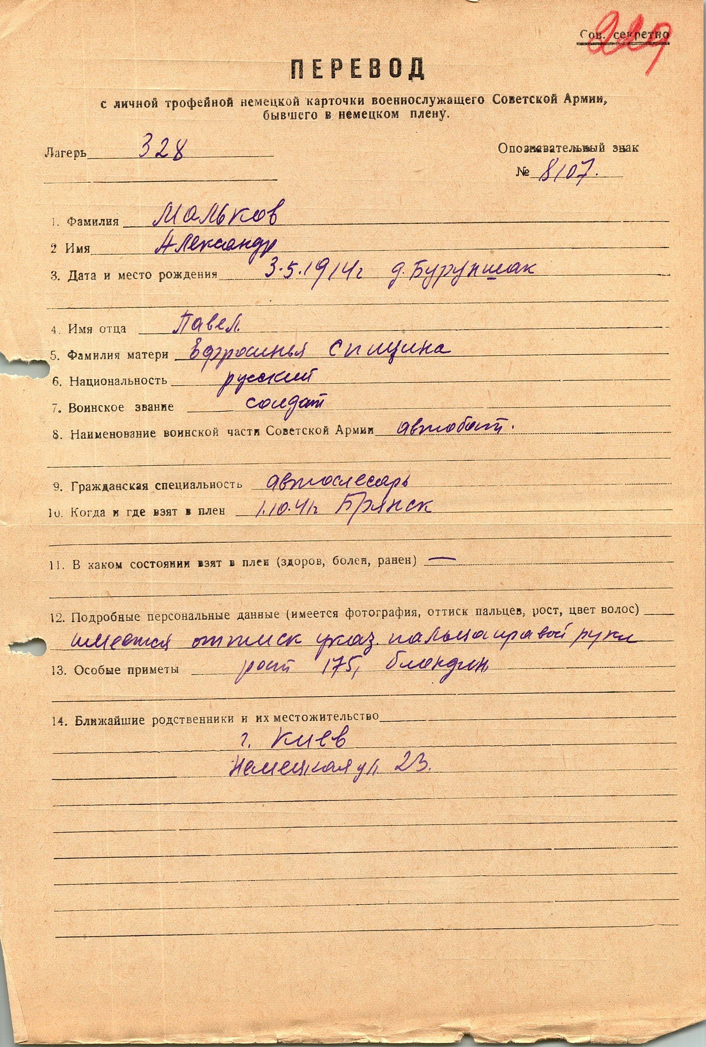 Военнопленные, трофейные карточки. Киевская обл.