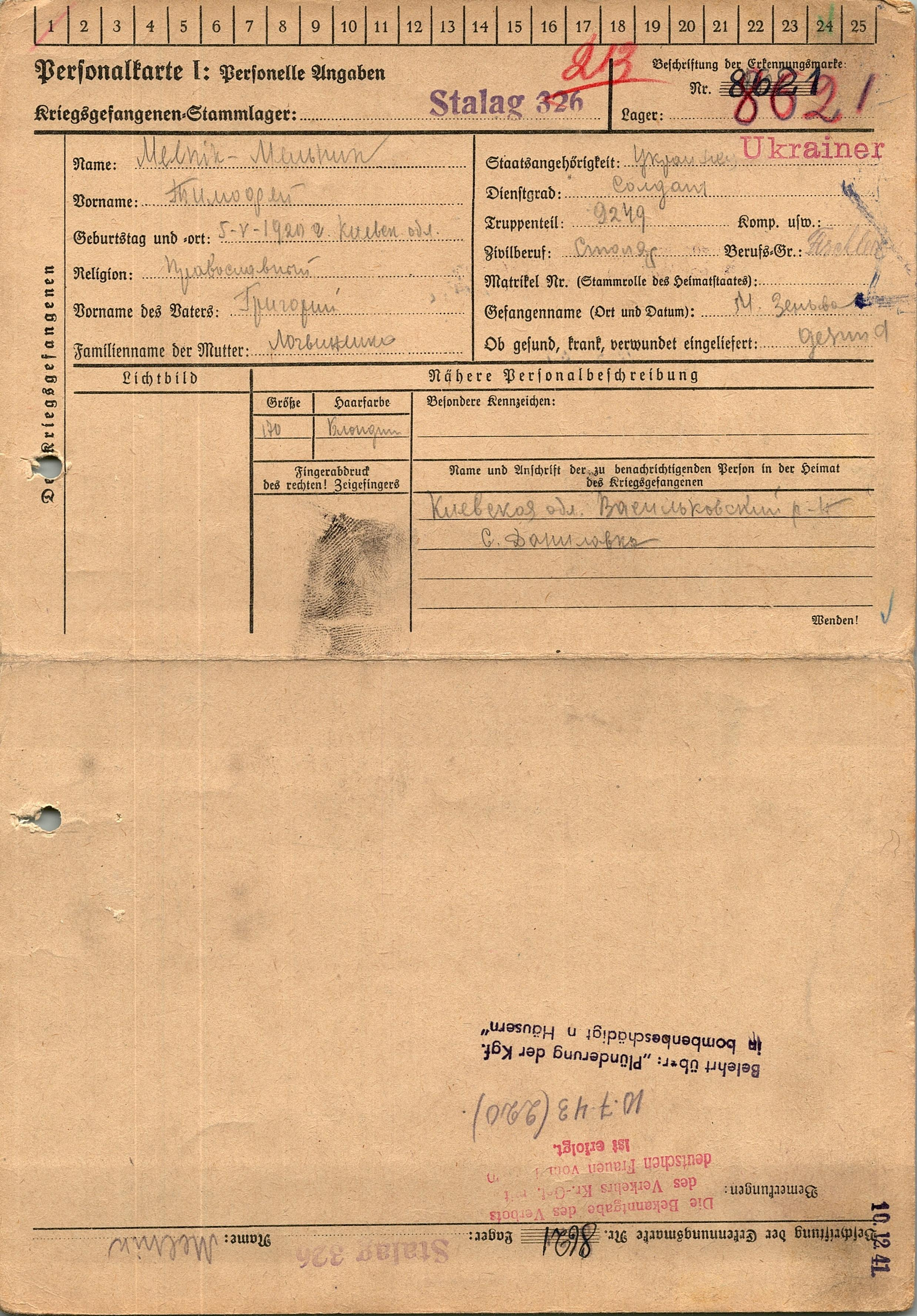 Военнопленные, трофейные карточки. Киевская обл.