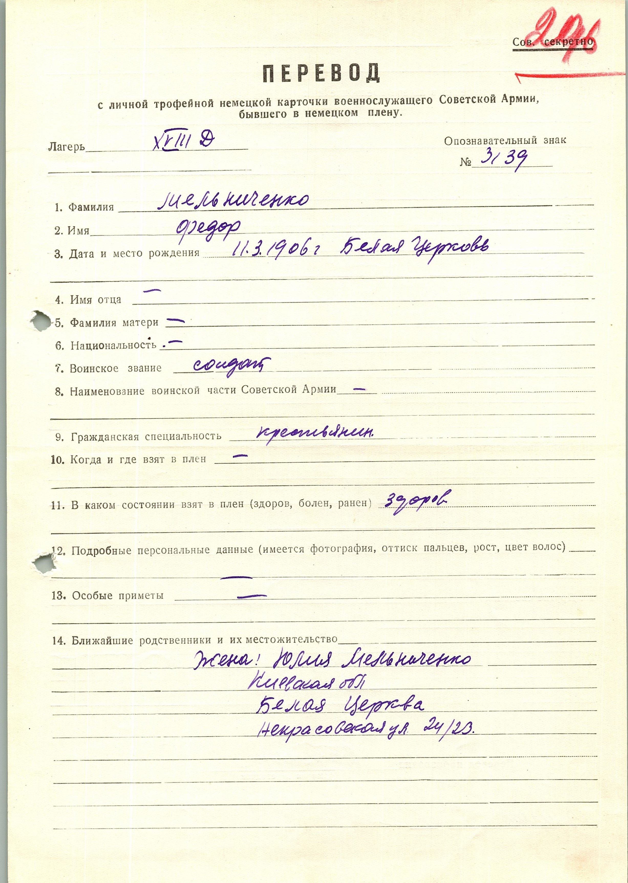 Военнопленные, трофейные карточки. Киевская обл.