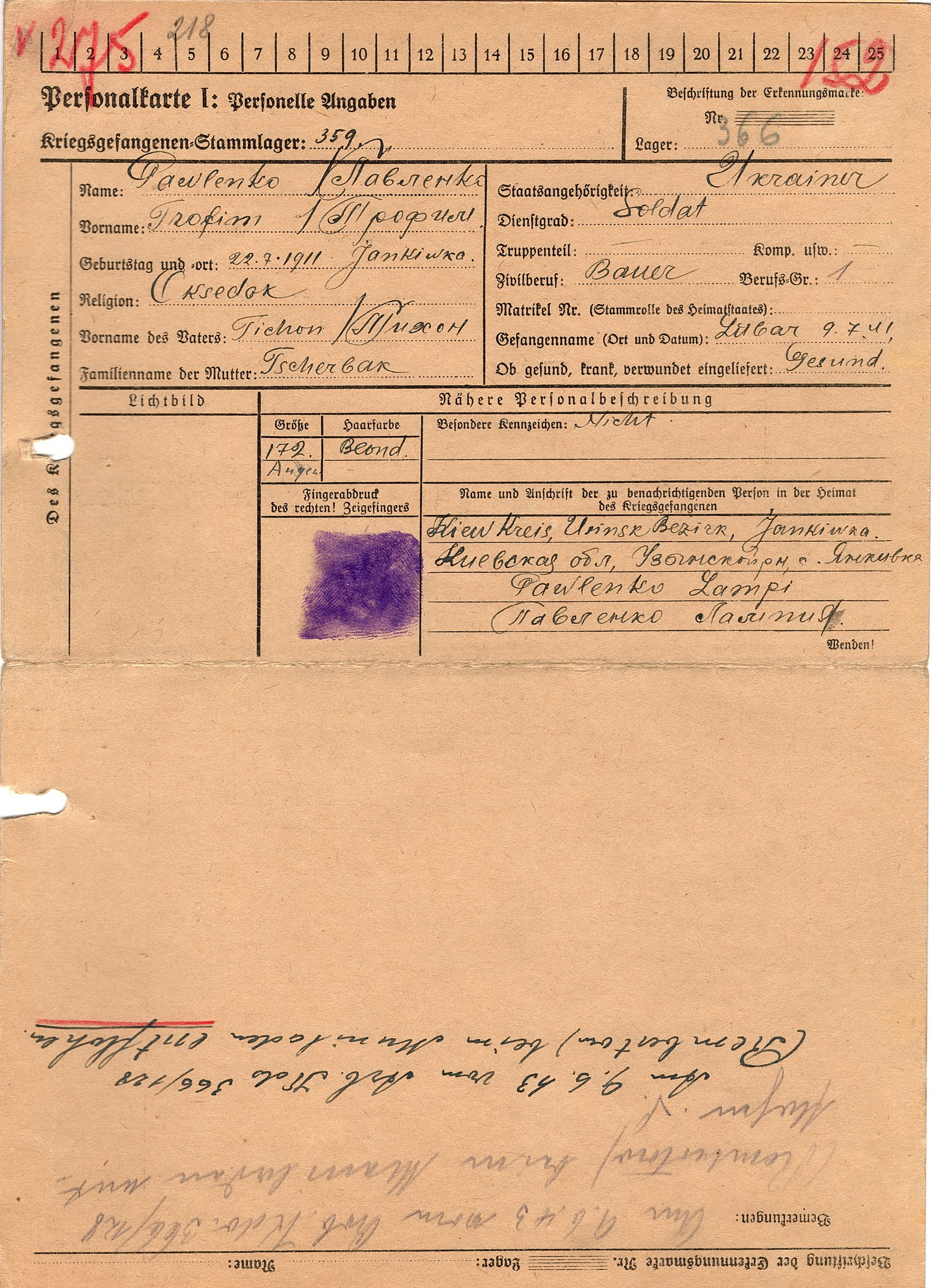 Военнопленные, трофейные карточки. Киевская обл.
