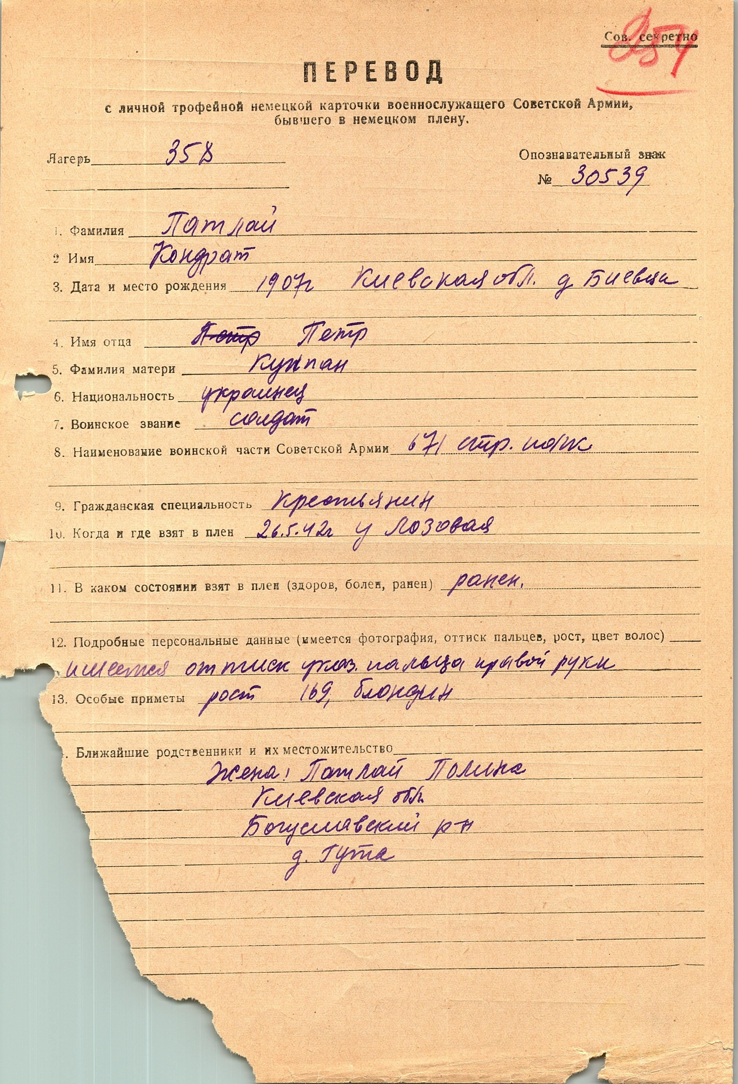 Военнопленные, трофейные карточки. Киевская обл.