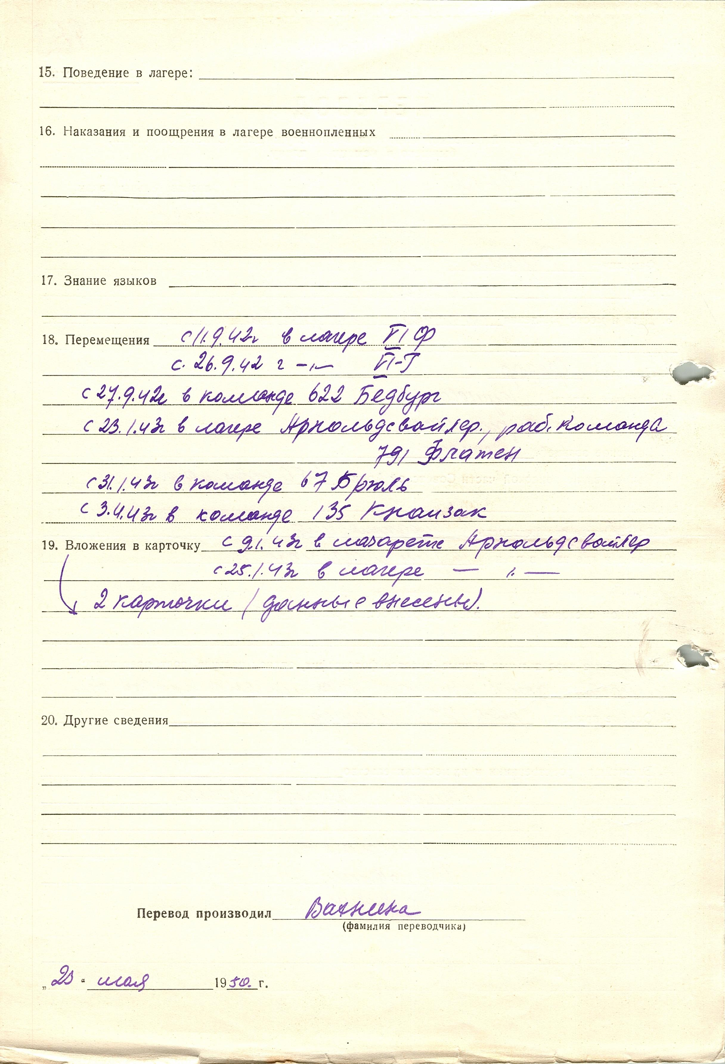 Военнопленные, трофейные карточки. Киевская обл.