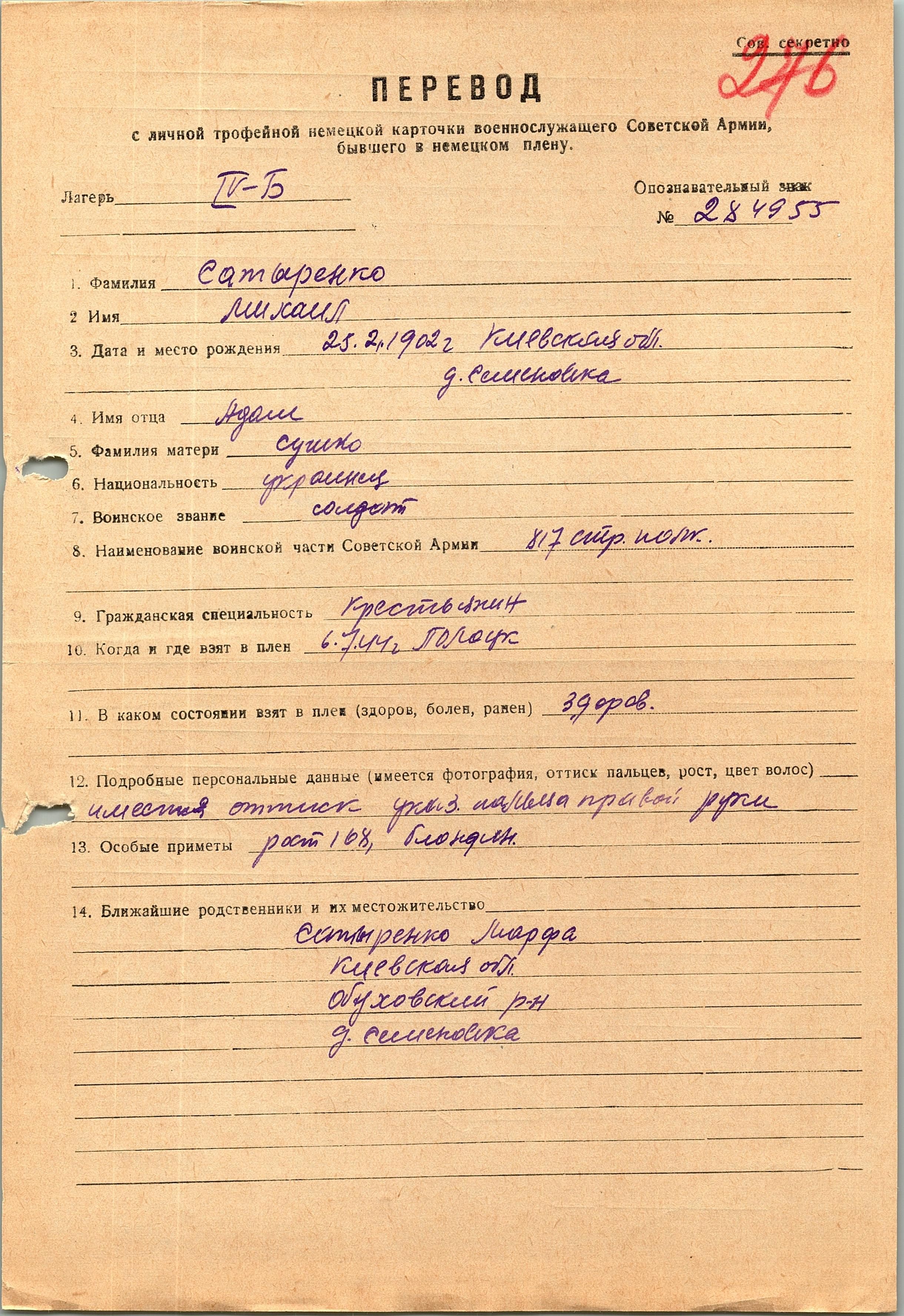 Военнопленные, трофейные карточки. Киевская обл.