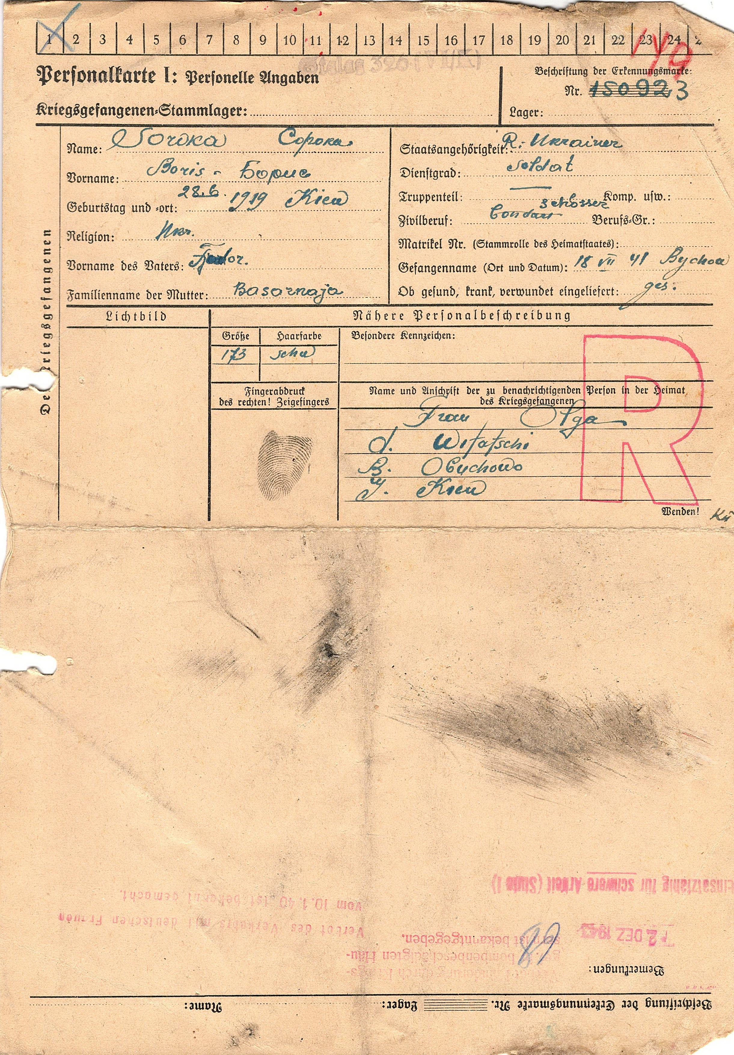 Военнопленные, трофейные карточки. Киевская обл.