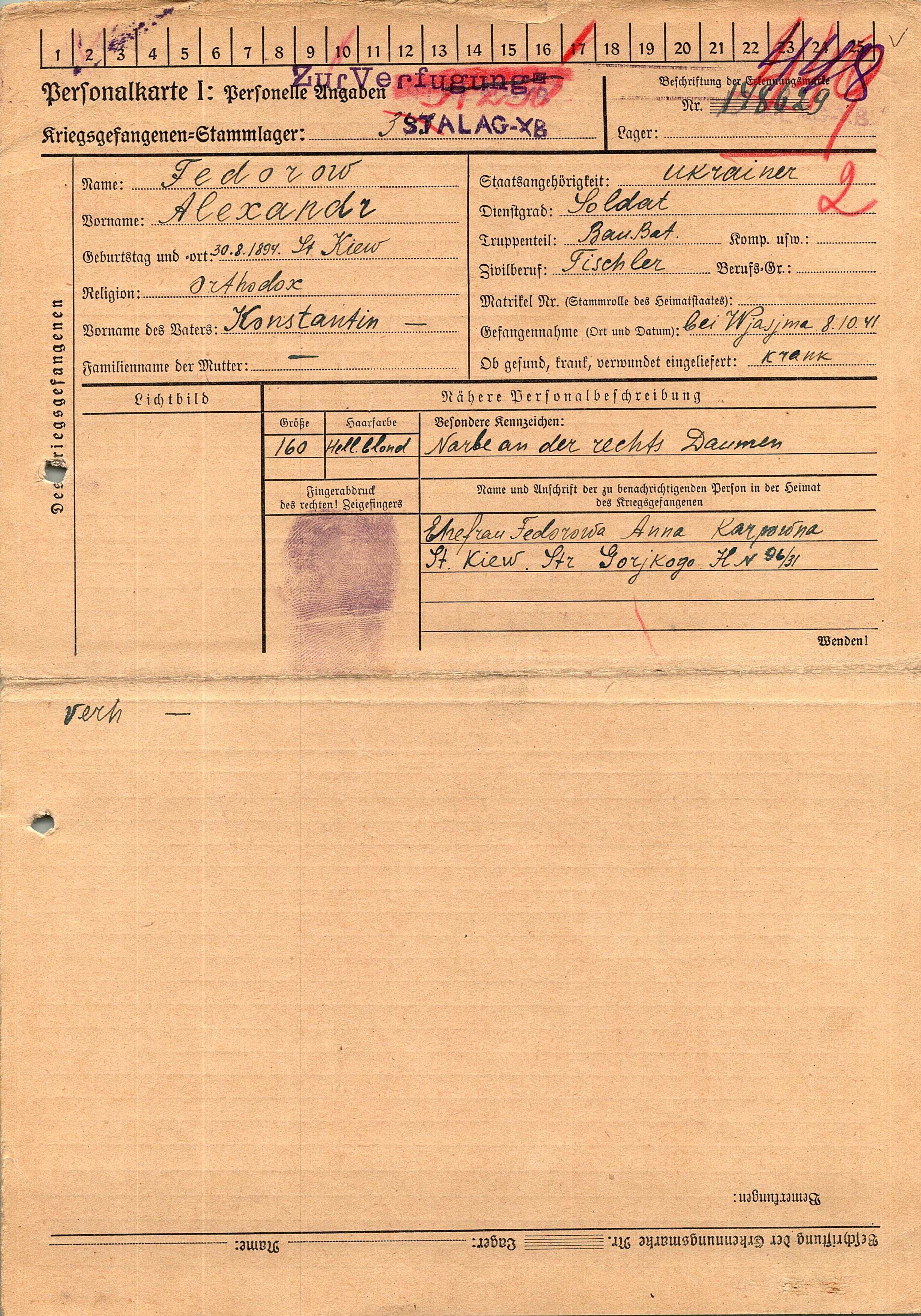Военнопленные, трофейные карточки. Киевская обл.