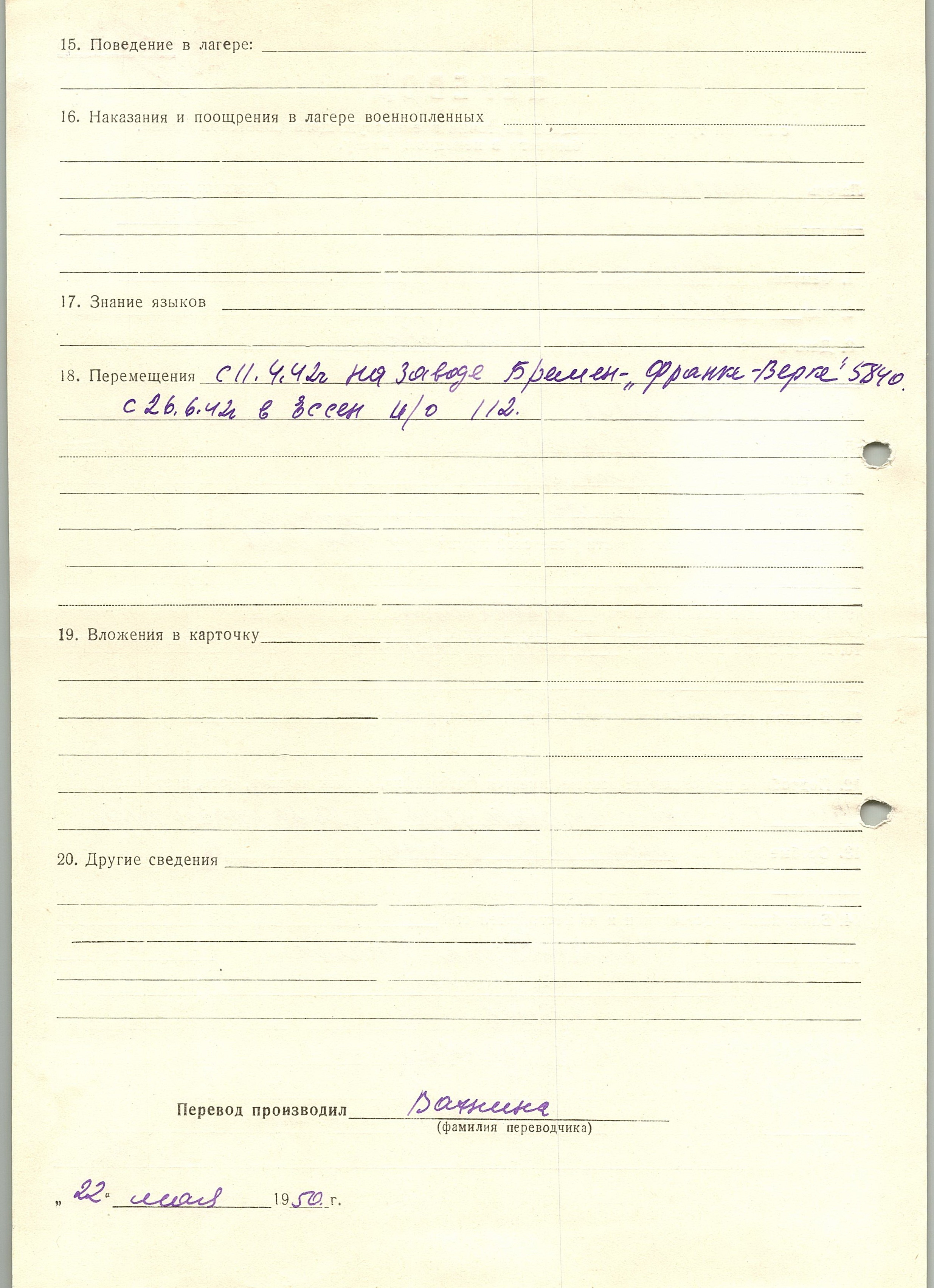 Военнопленные, трофейные карточки. Киевская обл.