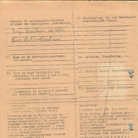 с 27.01.1944 г. - в лагере XIБ. 31.01.1944 г. был переведен из лагеря VIIA Мосбург в лагерь Дербке, 25.04.1944 г. - в рабочую команду 135 Нортгайм, 02.10.1944 г. - бежал из команды. 18.10.1944 отмечен в списках, как сбежавший и не пойманный.