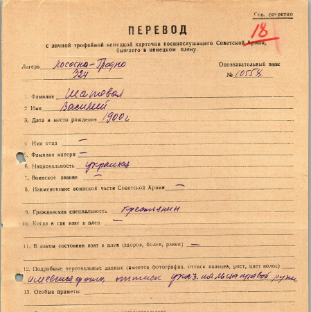 , 1900 г. р. Украинец. 20.05.1942 г. был отчислен из плена.