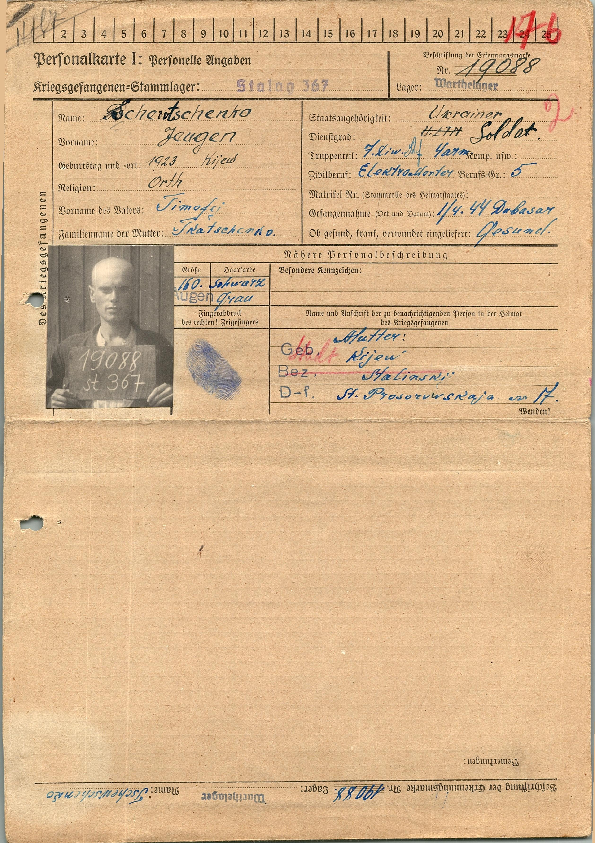 Военнопленные, трофейные карточки. Киевская обл.