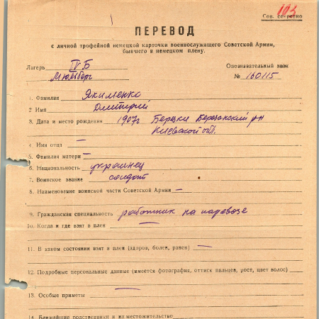 , 1907 г. р., Березки, Березанский район, Киевская область. Украинец. Рядовой.