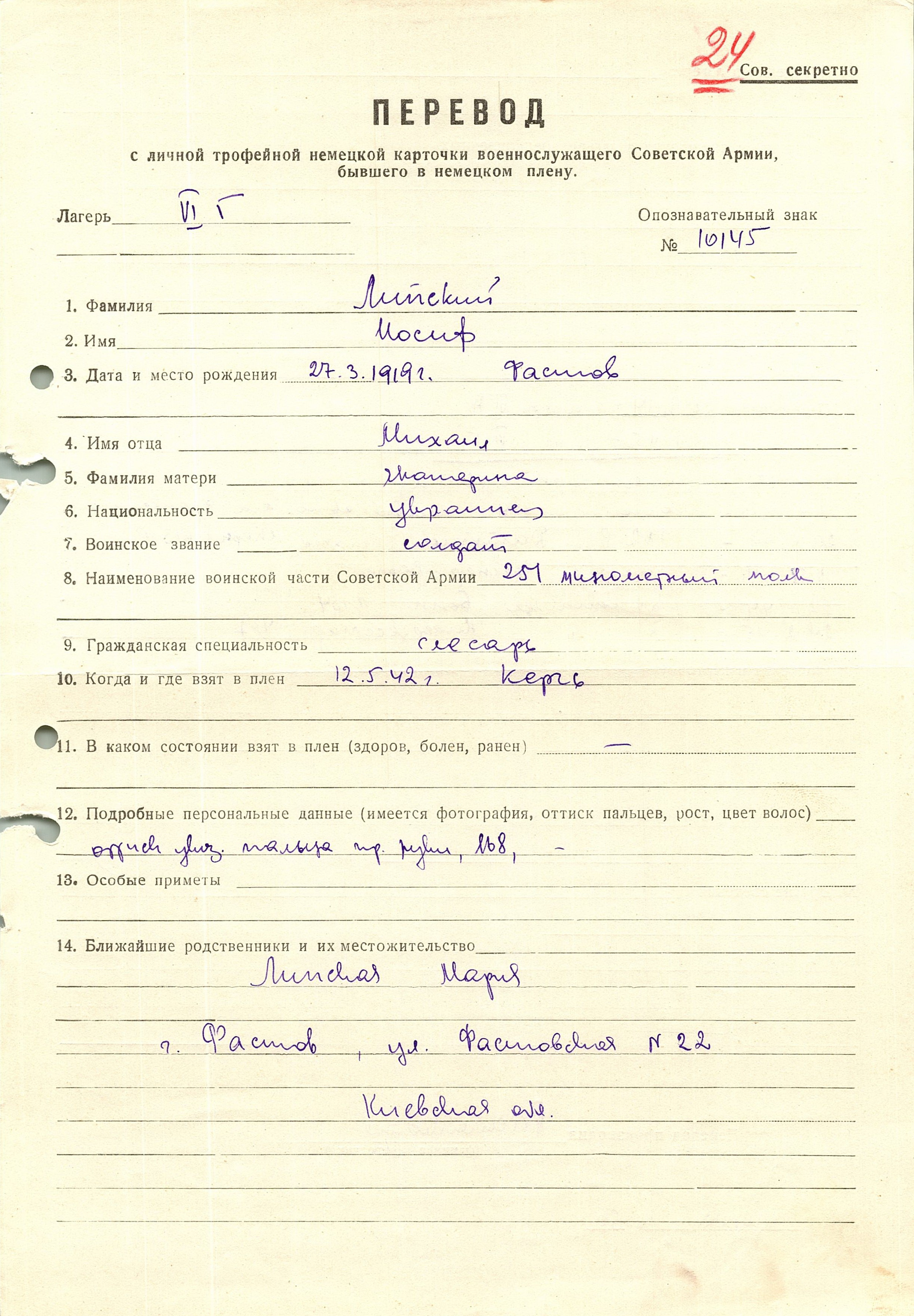 Военнопленные, трофейные карточки. Киевская обл.