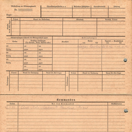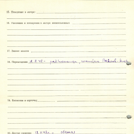Перемещения: 12.11.42 – рабочая команда, госпиталь Павлов-Киев.