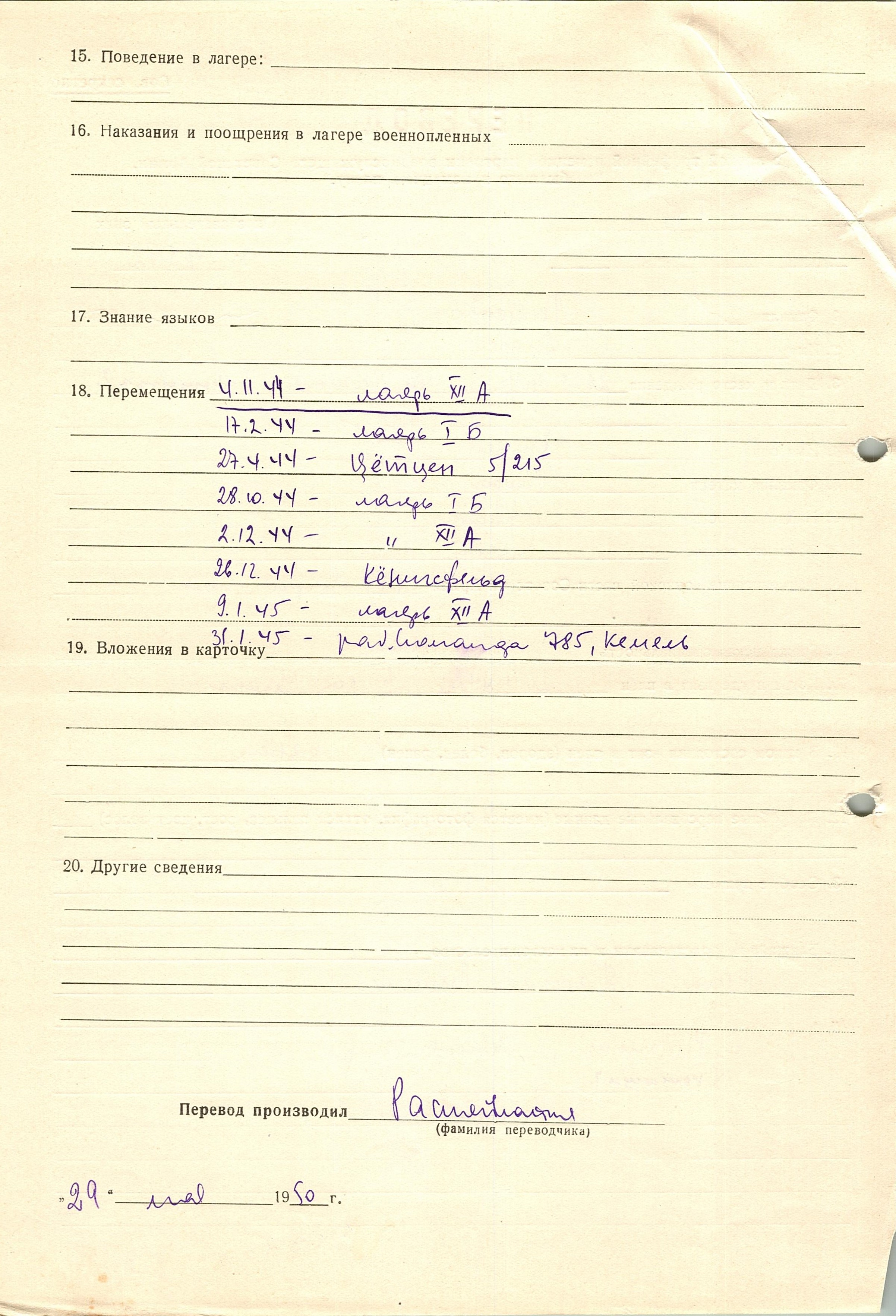 Военнопленные, трофейные карточки. Киевская обл.