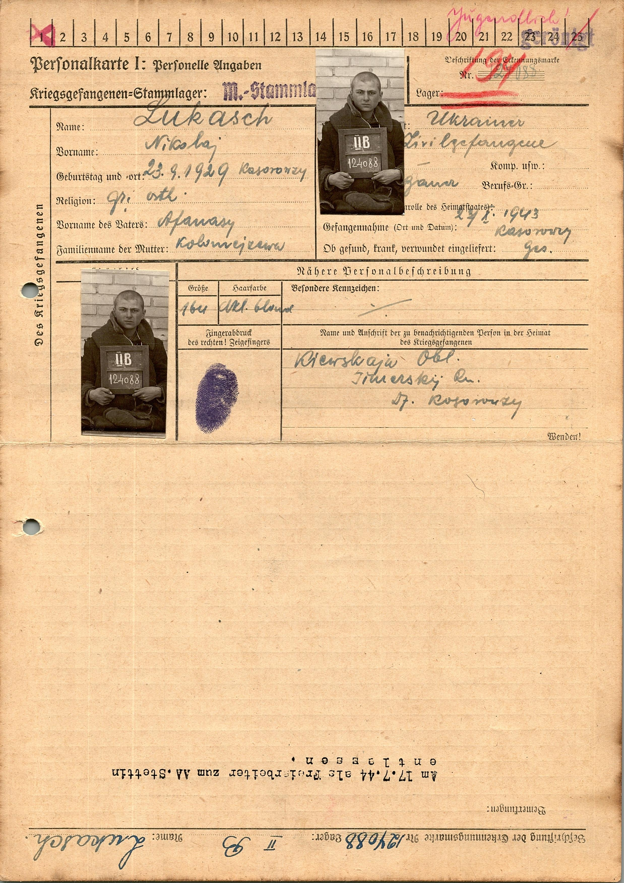 Военнопленные, трофейные карточки. Киевская обл.