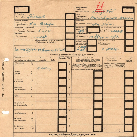 Мысливщенко Василий Иванович – 1910 г.р., младший лейт. запаса. Попал в плен: 30 августа 1942 г.