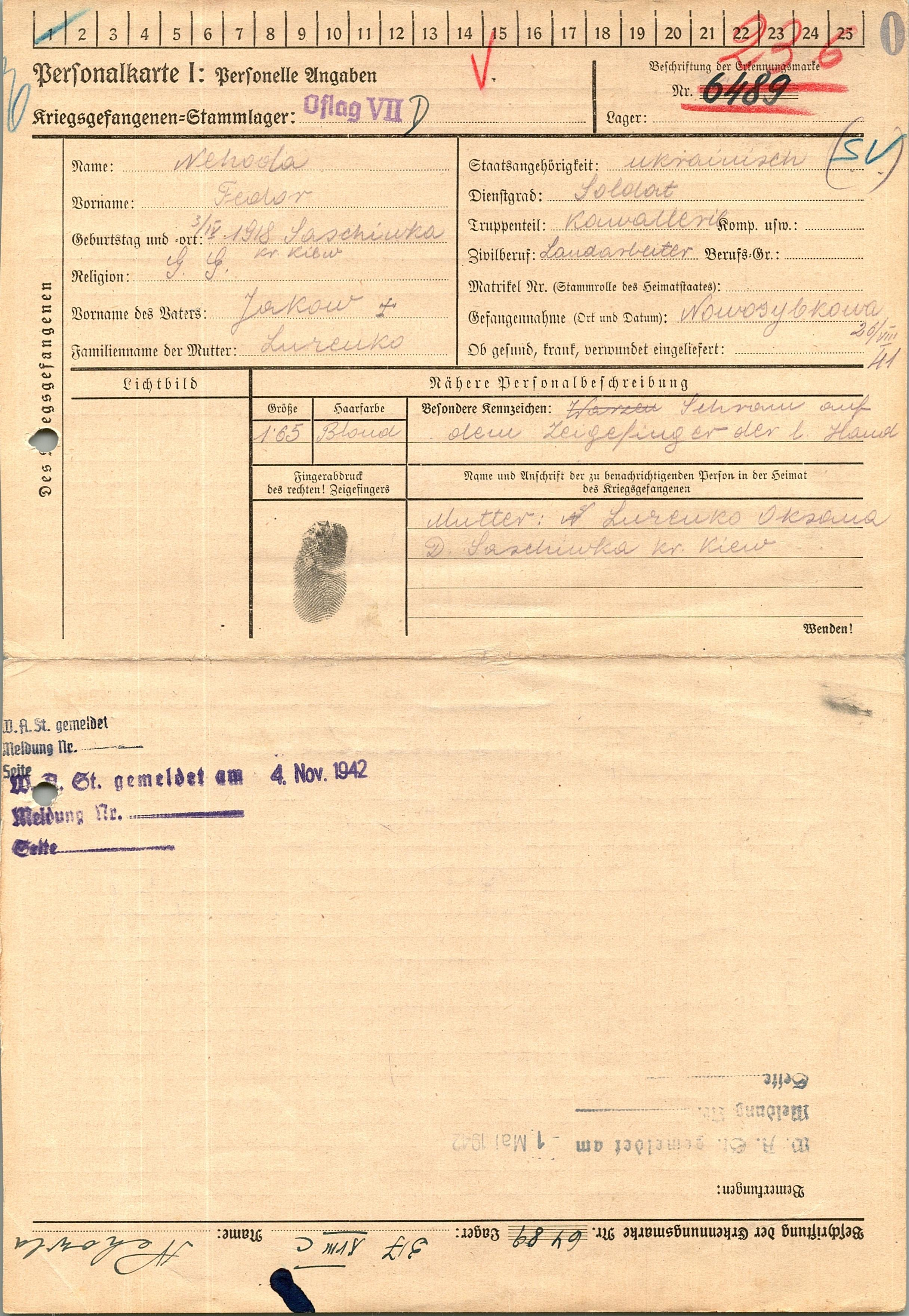 Военнопленные, трофейные карточки. Киевская обл.