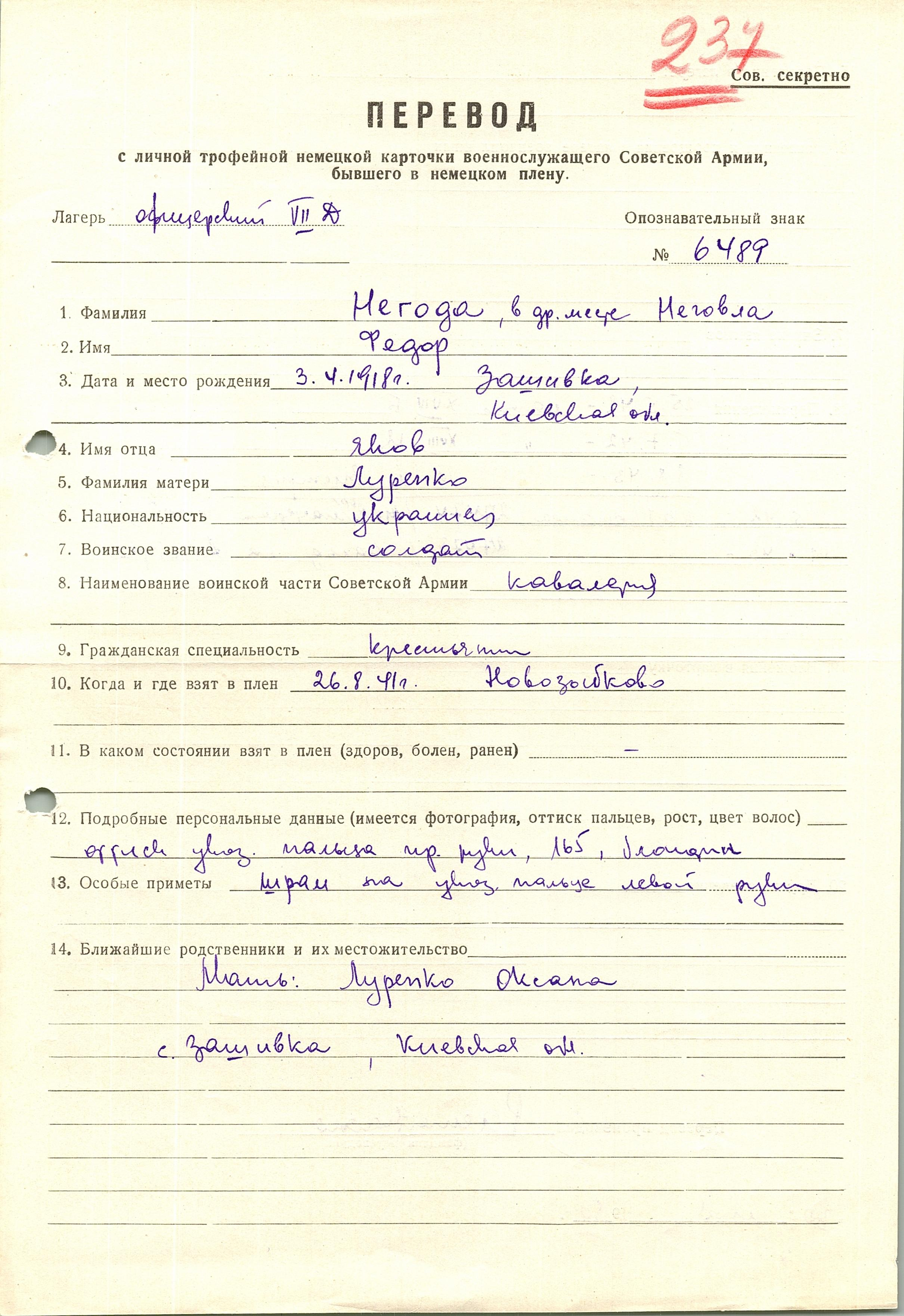 Военнопленные, трофейные карточки. Киевская обл.