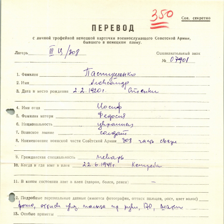 Пастушенко Александр Иосифович – 02.02.1920 г.р., Степки. Солдат, 308 часть связи. Попал в плен: 22.06.1941 г., с. Нетреба.