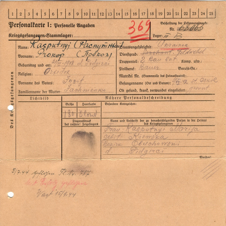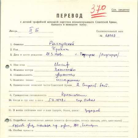 Распутный Прокоп Иосифович – 21.03.1908 г.р., с. Подгорцы. Старшина, 2 строительный батальон. Взят в плен: 05.07.1942 г., г. Оскол.