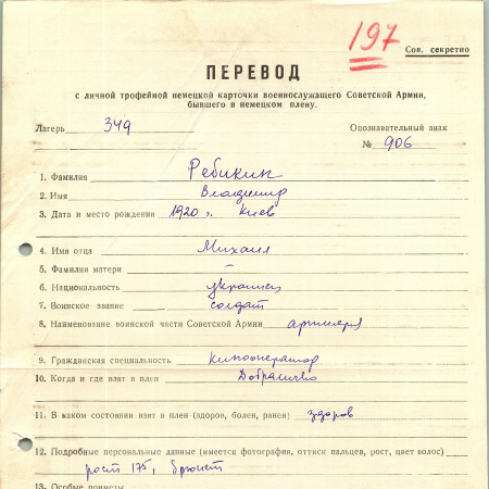 Ребикин Владимир Михайлович – 1920 г.р., г. Киев. Солдат, артиллерия.