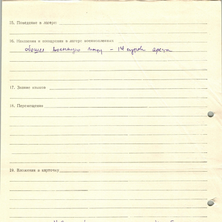 Наказания и поощрения в лагере военнопленных: обошел военную почту – 14 суток ареста.