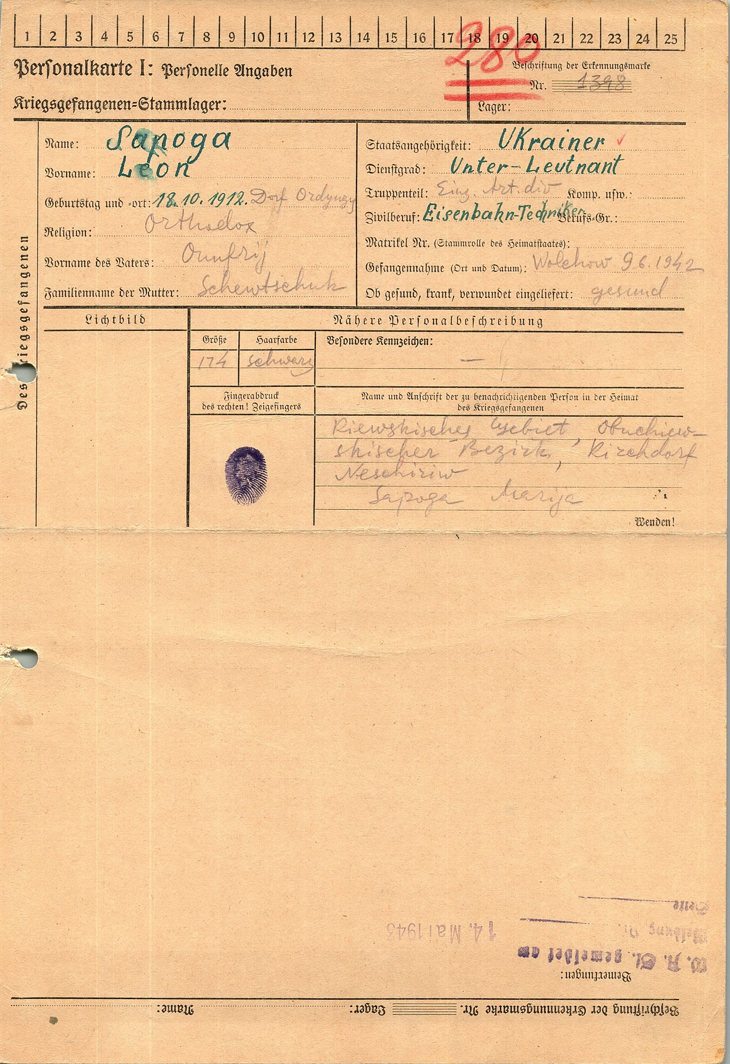 Военнопленные, трофейные карточки. Киевская обл.