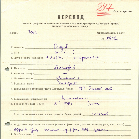 Седов Василий Тимофеевич – 02.02.1918 г.р., с. Крапивня, Киевская область Солдат, 197 строительный батальон. Взят в плен: 02.07.1941 г., г. Рига.