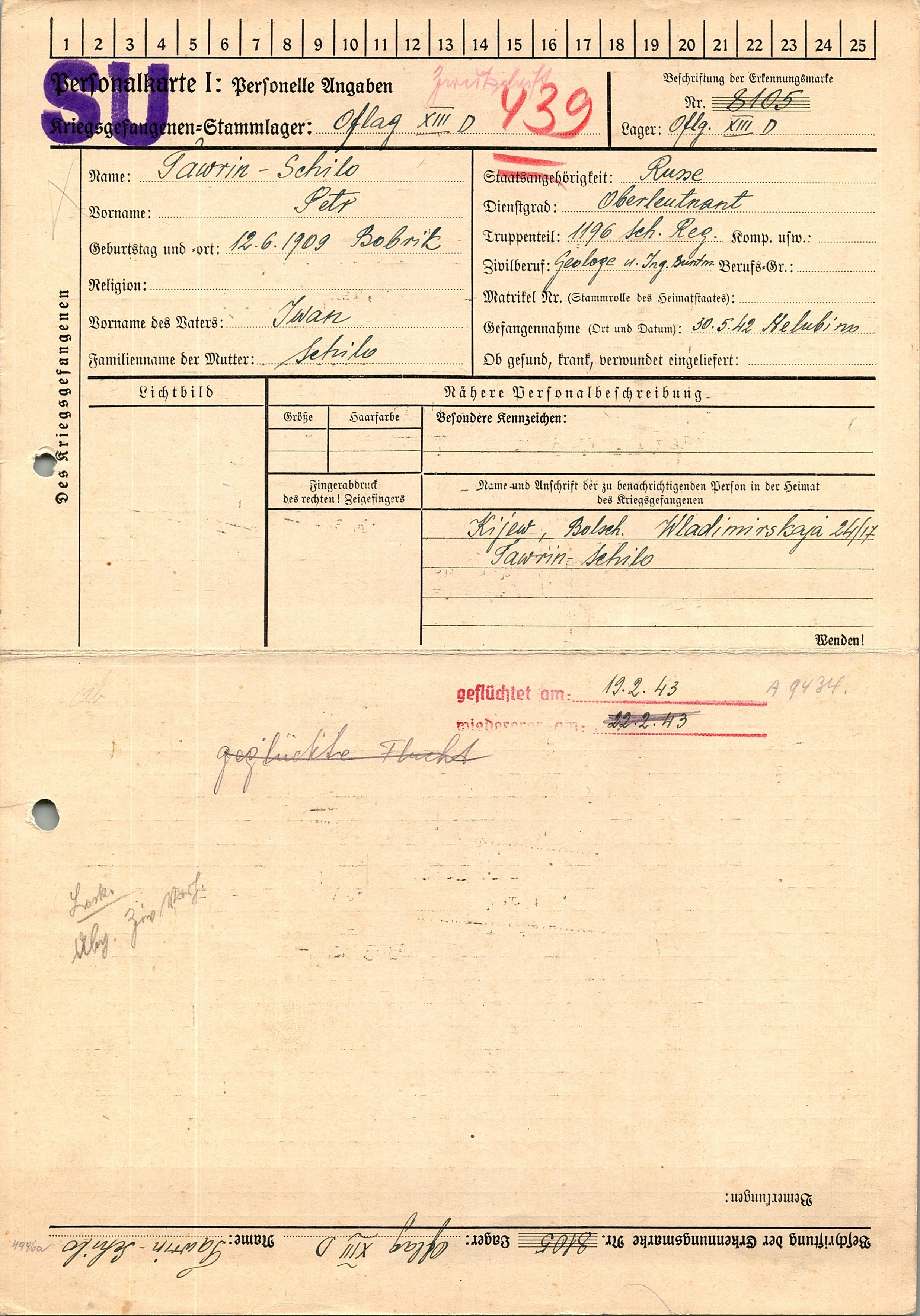 Военнопленные, трофейные карточки. Киевская обл.
