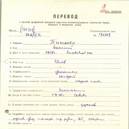 Титенко Василий Яковлевич – 1908 г.р., Киевская обл. Солдат, стрелковый полк. Взят в плен: 01.09.41 г., Севск.