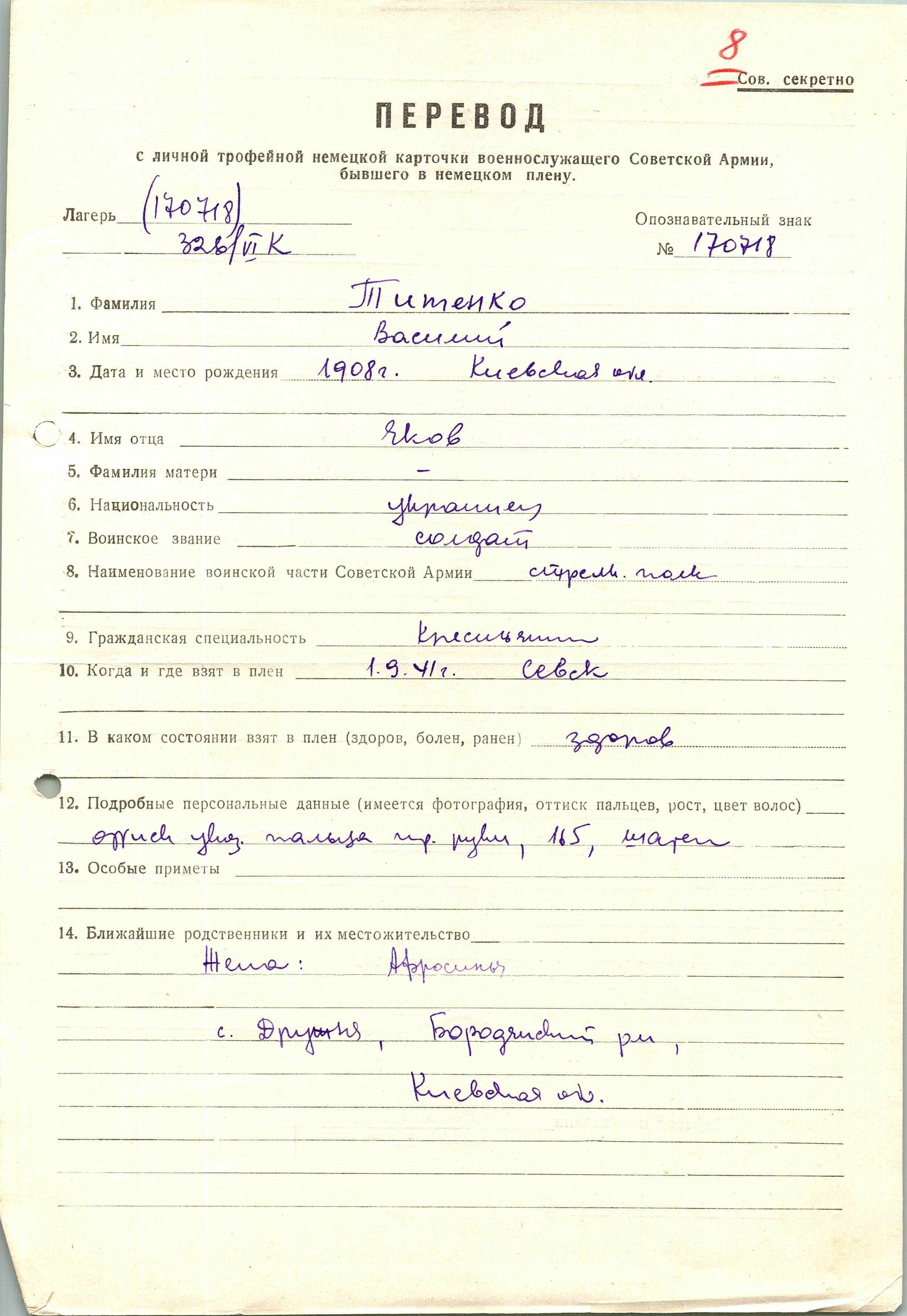 Военнопленные, трофейные карточки. Киевская обл.