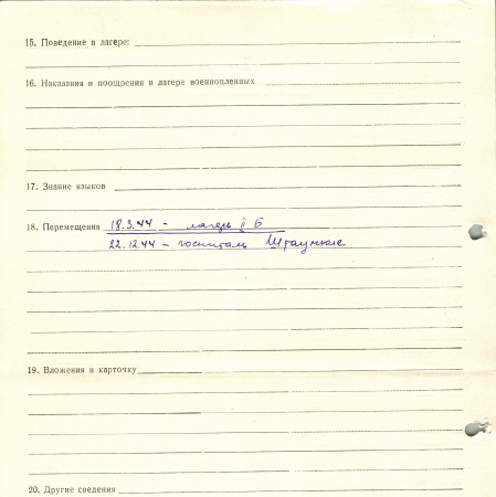Перемещения: 18.03.44 – лагерь II B, 22.12.44 – госпиталь Штаумюле.